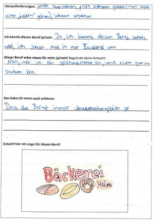 Exemplarisch zur Arbeit im Bereich Berufsorientierung: Arbeitsmaterial 1 und Arbeitsmaterial 2, 6. Klasse WiB (Wirtschaft und Beruf)