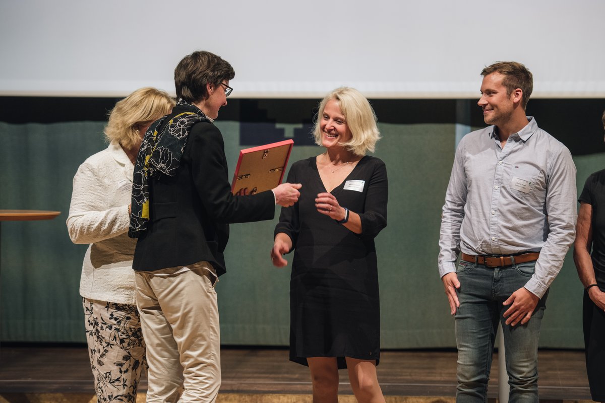 "Wir freuen uns, Ihrer Schule, Ihrem Kollegium und Ihnen, Frau Seybold, das Berufswahl-SIEGEL zu verleihen. Schon beim Audit fiel uns auf: Klein, aber fein.